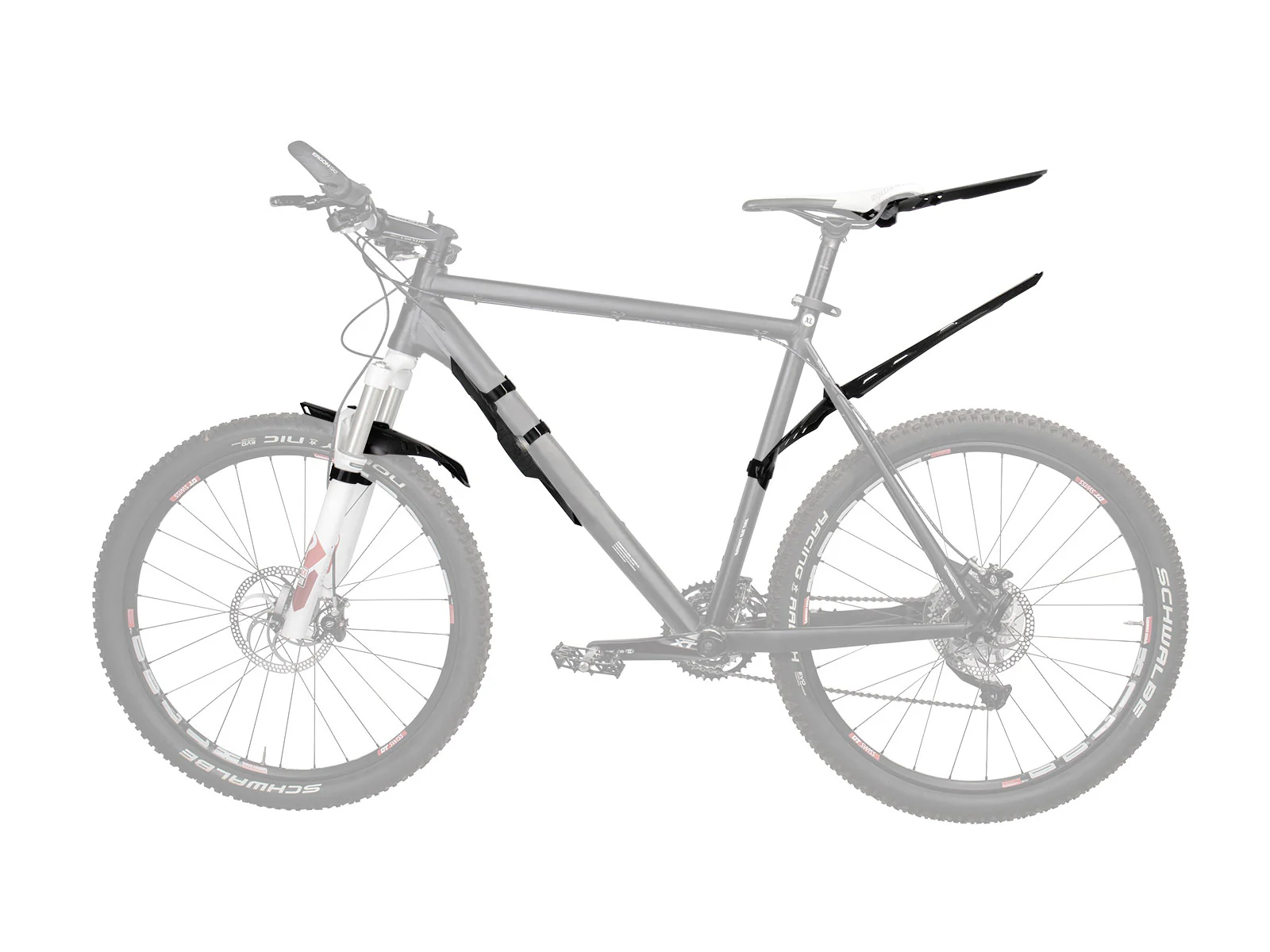 These flat-printed, origami inspired polypropylene fenders are ultralight, stylish, quickly attach and ready to go when wet weather arrives. Simply remove from the package, punch out the shape and fold along the perforated lines. Reflective printing adds safety at night while muti-mount positions and hook and loop straps allows fenders to fit a wide range of bike.